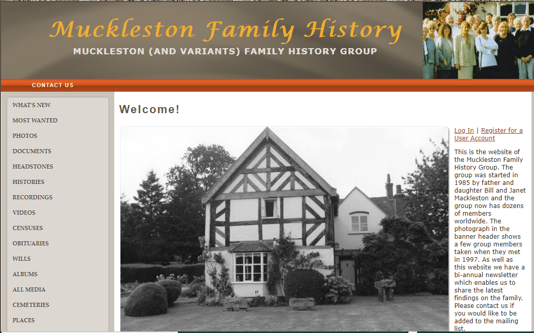 http://muckleston.one-name.net/ Posted 28 February 2018 by W Paul FeatherstoneThe Muckleston One-Name study web site goes live! Please visit http://muckleston.one-name.net/ to read all about this surname.