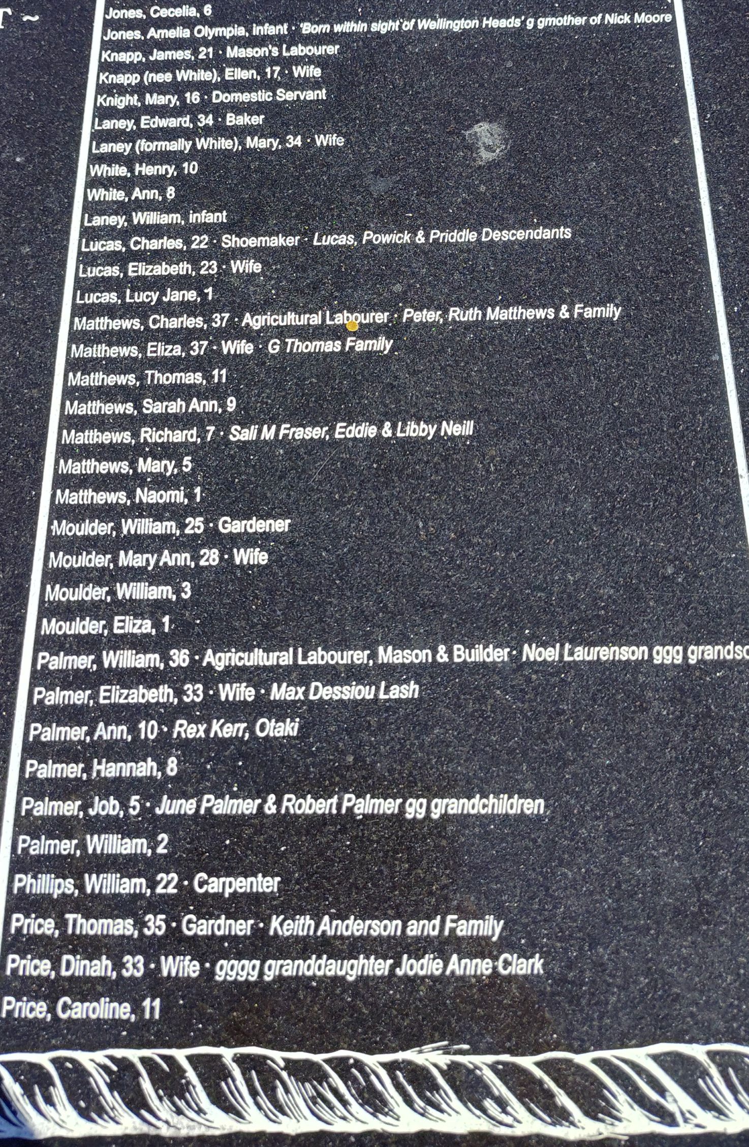 Inscription details Inscription ID:1963 Brief Description:Olympus passenger list, Nelson, New Zealand Type:Plaque Detail:Part of a series of engraved granite panels listing ships and passengers arriving 1841-1850 Inscription:OLYMPUS [ 28-10-1842 ] Charles Thorp, a cabin passenger, aged 21, first settled in Stoke.... [See photos for more detail.] Place:The Wharf, Nelson County:South Island Country:New Zealand Date:1842-2000 Contributor:Marilyn Astle Photo(s):Olympus1NZ_280226.jpgOlympus2NZ_280226.jpgOlympus3NZ_280226.jpgOlympus4NZ_280226.jpg Names:View all names on inscription Do another search