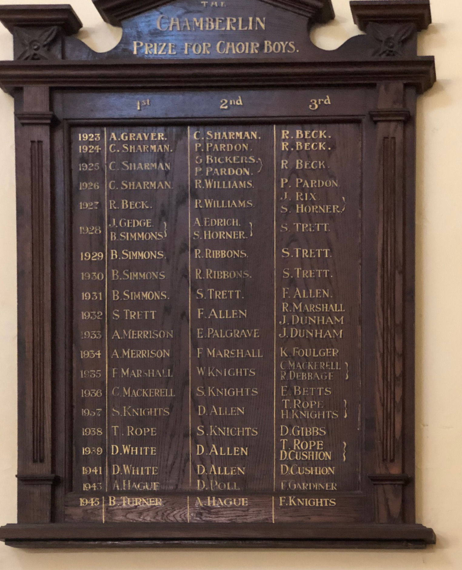 Inscriptions Index search results Search terms:surname : PalgraveTotal results: 5 Do another search Title Forenames Surname Year Brief Description Additional detail More info Nathaniel PALGRAVE 1689 List of Incumbents at St Mary, Reepham, Norfolk InfoImage John PALGRAVE 1706 List of Incumbents at St Mary, Reepham, Norfolk InfoImage A. PALGRAVE RAF Fleggburgh Roll of Honour R.N. InfoImage George PALGRAVE RAF Fleggburgh Roll of Honour InfoImage E. PALGRAVE 1933 Ranworth Roll of Honour for Choir Boys 2nd InfoImage End of displayed results. Do another search