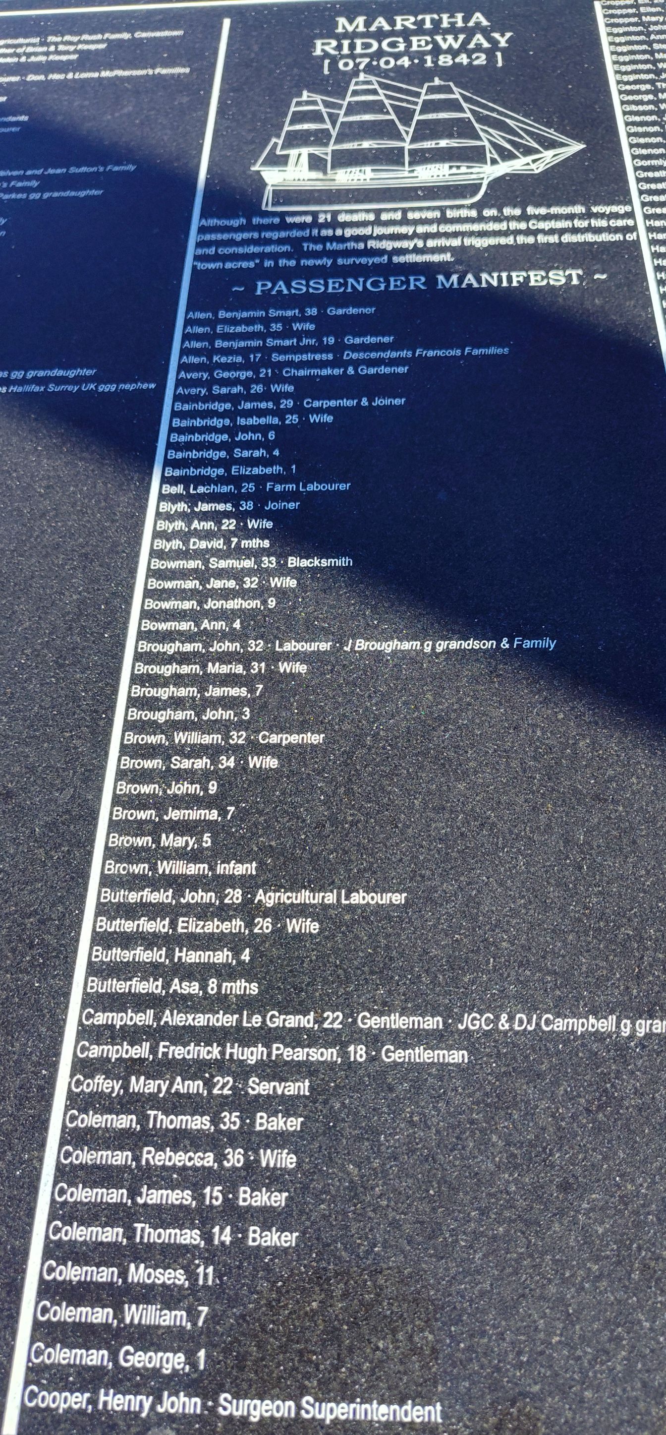 Inscriptions Index search results Search terms:surname : YatesTotal results: 11 Do another search Title Forenames Surname Year Brief Description Additional detail More info J E YATES 1911 WW1 Roll of Honour board at Christs Hospital School, near Horsham, Surrey 1911-1912 InfoImage W G YATES 1910 WW1 Roll of Honour board at Christs Hospital School, near Horsham, Surrey 1910-1913 InfoImage L G YATES 1998 Board at Colonel Dane Memorial Hall, Alwalton, Cambs B.Arch, RIBA (Architect) InfoImage Arthur Richard YATES War Memorial, Holy Trinity Church, Loddon, Norfolk InfoImage A E YATES GWR Roll, Newton Abbot Station, Devon Southall InfoImage A. YATES War memorial on gate to botanic garden, Bendigo, Australia InfoImage Genevieve E YATES 1876-1958 Plaque for civic project, Lethbridge AB Canada InfoImage John YATES 1842 Martha Ridgeway passenger list, Nelson, New Zealand 33, Carpenter InfoImage Jane YATES 1842 Martha Ridgeway passenger list, Nelson, New Zealand 31, Wife InfoImage Henry YATES 1842 Martha Ridgeway passenger list, Nelson, New Zealand 9 InfoImage Edward YATES 1842 Martha Ridgeway passenger list, Nelson, New Zealand 2 InfoImage End of displayed results. Do another search