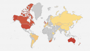 The highest numbers of names are in the following countries and there is a total of 10,331 worldwide.