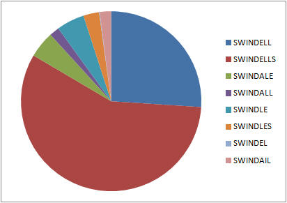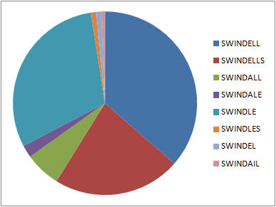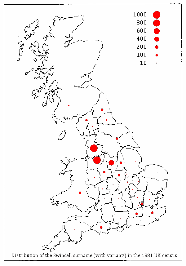 For convenience I use 'Swindell' to refer to all the variants listed above - unless I specifically use another variant. I treat Swinden, Swinney, Swindler, Swindley, Swondel, Swandel as distinctly different surnames from Swindell though there is a possibility that on occasion they have been deviants (errors) that became established as variants. See Variants and Deviants for further discussion.