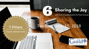 Sharing the Joy – Recording Available Posted 17 May 2018 by Tessa Keough On Tuesday, Bob Cumberbatch and Paul Howes presented on Sharing the Joy – the sixth in our ten-part webinar series on the 7 Pillars approach to a one-name study. This webinar series, hosted by the Guild’s Marketing Action Team, is free and open to the public. If you were unable to attend the webinar “live,” the recording is available here at the Guild Website for all to watch for the next seven days. After that, Sharing the Joy will go behind the member paywall. Do take the opportunity to learn more about how to get the word out about your study, how to encourage others to want to contribute to your study or join in with the research, and some of the resources Bob and Paul use to share their studies, by watching the recording of the presentation and downloading the PDF handout. Use the link Sharing the Joy.